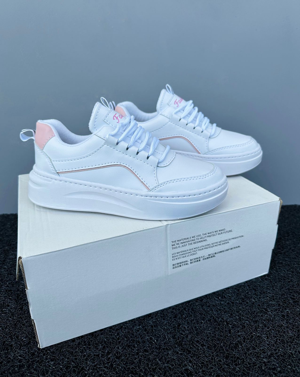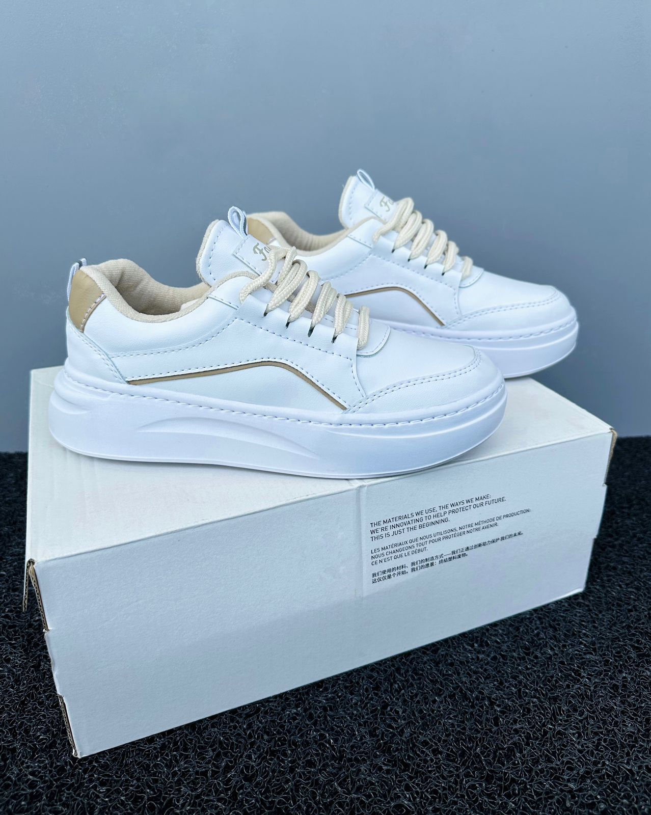 Olvida los zapatos que te cansan. Estos tenis están diseñados para acompañarte todo el día sin sacrificar estilo. Con su suela de plataforma ligera, sentirás que caminas sobre las nubes.