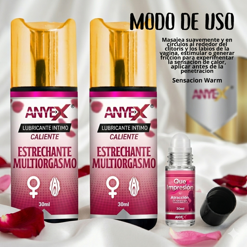 ANYEX Lubricante Íntimo Caliente Estrechante Multiorgasmo 30 ml + Roller Over Impresión – Placer Intenso y Multiorgásmico