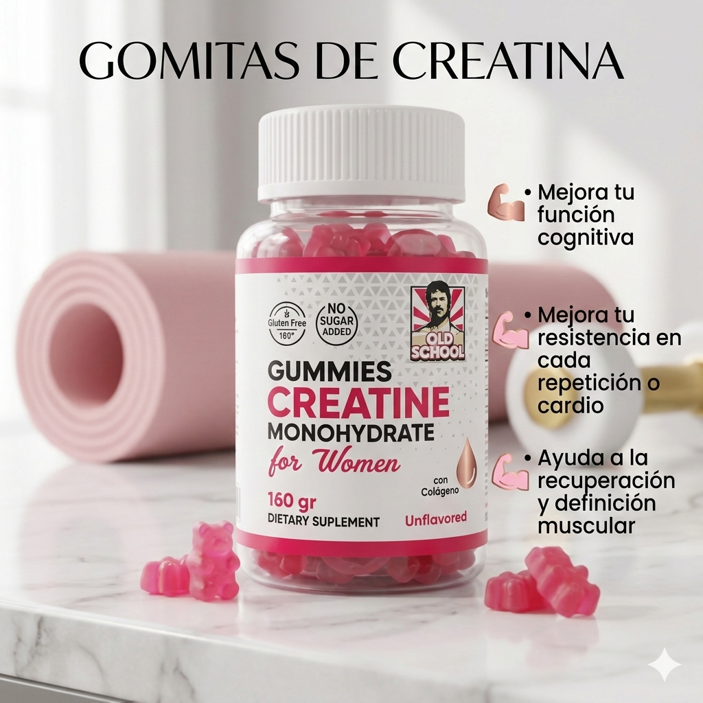 Diseñadas especialmente pensando en ti, estas deliciosas gomitas rosadas sin sabor artificial fuerte (unflavored pero agradables al paladar) combinan lo mejor de la creatina monohidrato pura con un formato práctico, divertido y súper fácil de tomar. Olvídate del polvo que se pega o del sabor raro: ¡solo abre el frasco y disfruta!